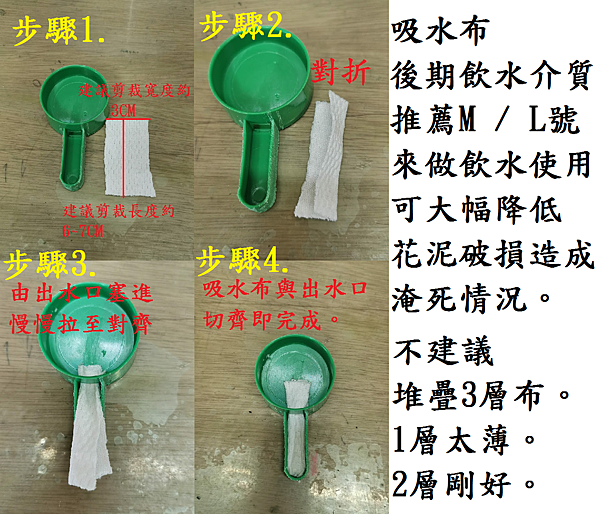 如果花泥使用快速破損代表飲水器不足或飲水器支數太少,導致花泥物件過度啃咬使用所致。